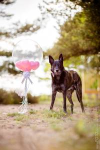 Ganz im Stillen haben sich Stefanie und Felix in diesem Jahr ihr Ja-Wort gegeben. Lediglich die Fellnase wusste davon und durfte sie dann auch beim Brautpaarshooting in der Mehlinger Heide begleiten. Stefanie hatte mit im Voraus extra geübt den Brautstraß zu halten, sowie sich ohne Angst in der Nähe des Luftballons auf zu halten. Also durfte er auf den Bildern natürlich auch nicht fehlen.
