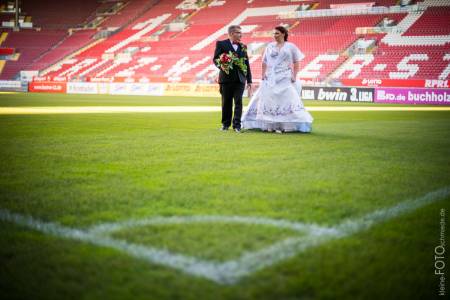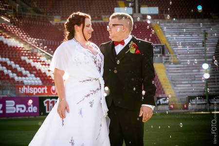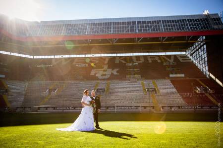 Julia und Peter haben sich in einer mega außergewöhnlichen Location das "Ja-Wort" gegeben, nämlich im Fritz-Walter-Stadion des 1. FCK auf dem Betzenberg.