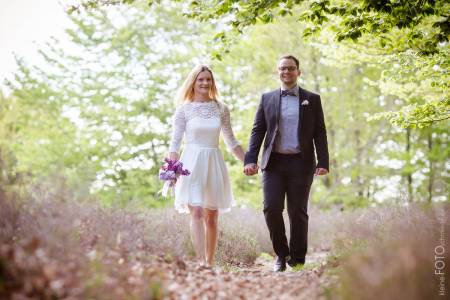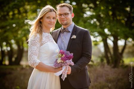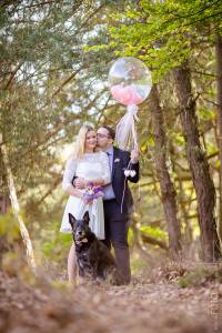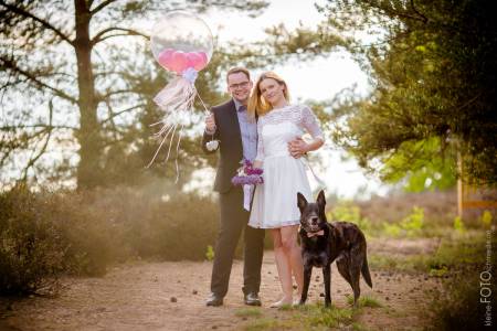 Ganz im Stillen haben sich Stefanie und Felix in diesem Jahr ihr Ja-Wort gegeben. Lediglich die Fellnase wusste davon und durfte sie dann auch beim Brautpaarshooting in der Mehlinger Heide begleiten. Stefanie hatte mit im Voraus extra geübt den Brautstraß zu halten, sowie sich ohne Angst in der Nähe des Luftballons auf zu halten. Also durfte er auf den Bildern natürlich auch nicht fehlen.