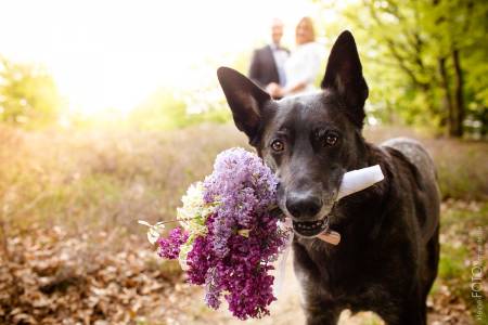 Und ich freue mich immer sehr, wenn ich bei einem Hochzeitsshooting auch meine zweite Leidenschaft, die Tierfotografie mit einbringen kann und auch ein Vierbeiniger "Trauzeuge" mit vor der Kamera stehen darf :-)